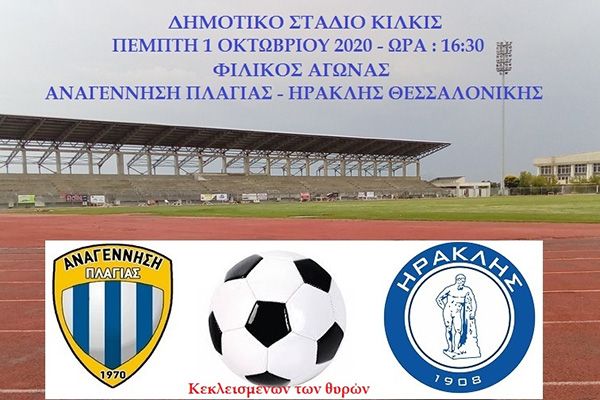 Φιλικό αγώνα με τον Ηρακλή Θεσσαλονίκης θα δώσει η Αναγέννηση Πλαγιάς, στο Δημοτικό Στάδιο Κιλκίς, την Πέμπτη 1 Οκτωβρίου, στις 4:30 το απόγευμα