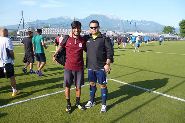 . Στην φωτογραφία ο Κωνσταντίνος Τσακιρίδης και ο Βασίλης Παμπορίδης στη σχολή προπονητών ποδοσφαίρου UEFA B της ΕΠΟ, Ιούνιος 2016 στις εγκαταστάσεις της ΕΠΣ Πιερίας στην Κατερίνη.