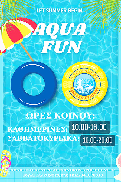 Καθημερινά από τις 10.00 το πρωί ως τις 16.00 το μεσημέρι, και τα σαββατοκύριακα από τις 10.00 το πρωί ως τις 20.00 το βράδυ υπάρχει το Aqua Fun!