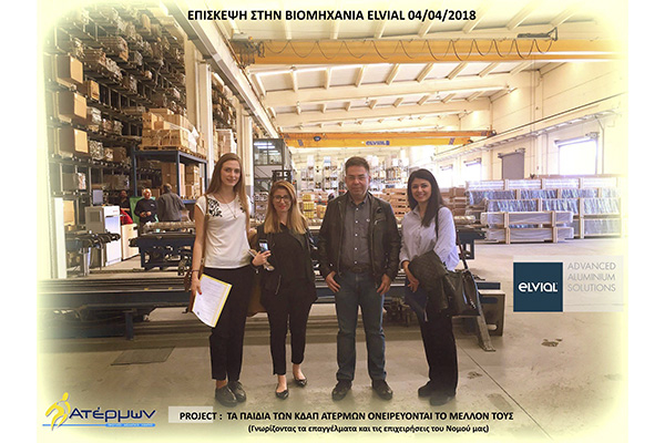 Η δεύτερη επίσκεψη από τους εκπαιδευτικούς του ΚΔΑΠ ΑΤΕΡΜΩΝ πραγματοποιήθηκε την Τετάρτη 04/04/2018 στην εταιρεία ELVIAL Α.Ε την οποία ευχαριστούμε θερμά για την άμεση και θετική ανταπόκριση στο αίτημα μας.