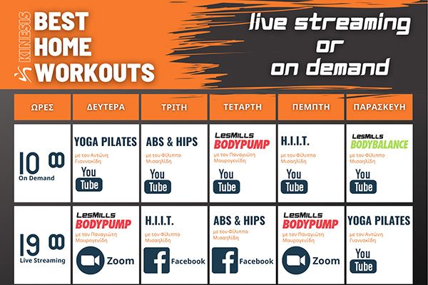 Τα ραντεβού μας μέσα από τις ψηφιακές πλατφόρμες του KINESIS GYM (Facebook, YouTube, Zoom) θα είναι πλέον διπλά, πρωί και απόγευμα.