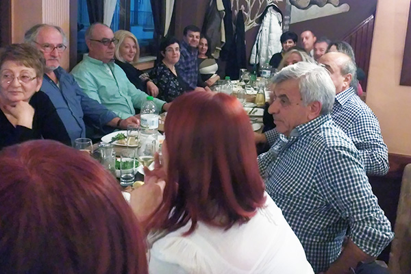 Το βράδυ οι εκδρομείς μετέβησαν σε ταβέρνα της πόλης με ζωντανή μουσική, όπου και διασκέδασαν μέχρι αργά το βράδυ. Το πρωί της Κυριακής οι παλαίμαχοι αναχώρησαν για περιήγηση - ξενάγηση στη φημισμένη λίμνη του Πλαστήρα με τα πανέμορφα χωριά της.