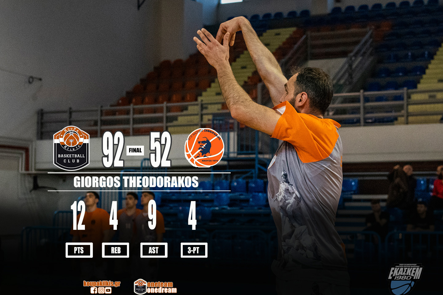 Παπαδόπουλος Σ. 11(2τρ.), Ημερίδης 12, Ποζίδης 6, Παπαδόπουλος Ν. 3, Φιλιππίδης, Πιπερτζής 4, Θεοδωράκος 12(4τρ.), Πατσούρης 9(2τρ.), Χρυσάφης 2, Τσιλιγκαρίδης Σ.5 (1τρ.), Τσιλιγκαρίδης Λ. 10(1τρ.), Μανούσος 19.