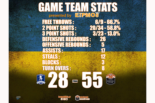 Δεν υπάρχει κάτι να ειπωθεί, παρά μόνο ή σκληρή άμυνα που έπαιξε η ομάδα στο δεύτερο και τέταρτο δεκάλεπτο και επηρέασε τη γενικότερη εξέλιξη του αγώνα, επιτρέποντας τον αντίπαλο να σκοράρει μόλις 5 πόντους (2 και 3 αντίστοιχα) σε 20 αγωνιστικά λεπτά .