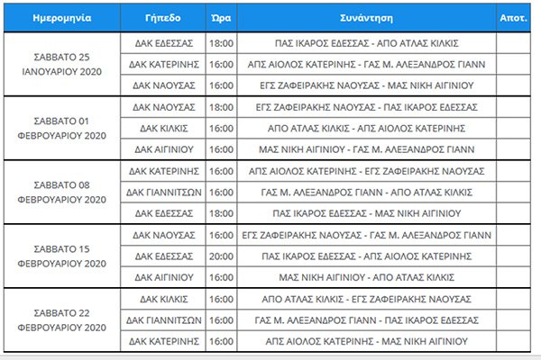 Οι ομάδες που συμμετέχουν στο φετινό πρωτάθλημα είναι οι εξής: ΑΤΛΑΣ ΚΙΛΚΙΣ, ΙΚΑΡΟΣ ΕΔΕΣΣΑΣ, ΖΑΦΕΙΡΑΚΗΣ ΝΑΟΥΣΑΣ, ΑΙΟΛΟΣ ΚΑΤΕΡΙΝΗΣ. Μ. ΑΛΕΞΑΝΔΡΟΣ ΓΙΑΝΝΙΤΣΩΝ και ΝΙΚΗ ΑΙΓΙΝΙΟΥ