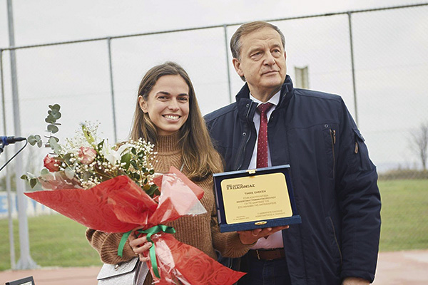 Όμως, ιδιαίτερες ευχαριστίες εκφράζω στην τενίστρια Αξιουπολίτισσα Βαλεντίνη Γραμματικοπούλου που είναι και η τιμώμενη της σημερινής ημέρας.