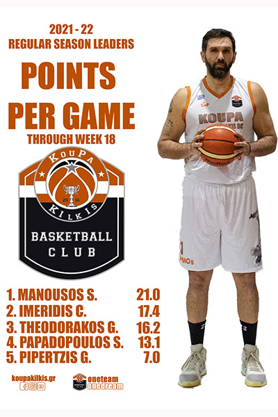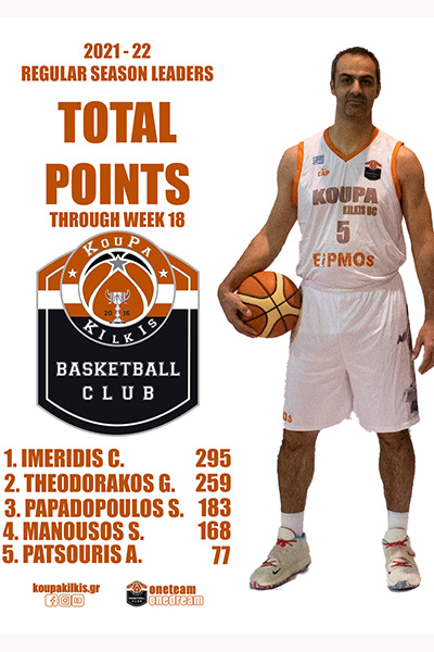 Σκόραρε περισσότερο από κάθε άλλη στο πρωτάθλημα, με 81,1 πόντους ενεργητικό ενώ είχε τη δεύτερη καλύτερη άμυνα στον όμιλό της δεχόμενη κάθε παιχνίδι μόλις 51,4. Η ΚουΠα Κιλκίς έκλεισε την κανονική περίοδο προπορευόμενη κατά μέσο όρο, 29,6 πόντους από τον αντίπαλό της.