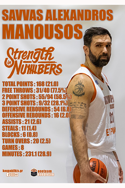 Οι αριθμοί όπως παρατηρείτε είναι καταλυτικοί, επιβεβαιώνοντας την κυριαρχικότητα των παραπάνω παικτών απέναντι σε συμπαίκτες αλλά κυρίως σε αντιπάλους. Συνυπολογίζοντας ωστόσο την τριών ταχυτήτων δυναμική του πρωταθλήματος της ΕΚΑΣΚΕΜ, είναι φυσιολογικό αθλητές τέτοιου βεληνεκούς με παραστάσεις και εμπειρίες από μεγαλύτερες κατηγορίες, ακόμα και από ξένα πρωταθλήματα όπως ο Μανούσος, να μην ξοδεύουν όλη τους την ενέργεια και να μην ξετυλίγουν όλο το ταλέντο τους σε παιχνίδια χαμηλής επικινδυνότητας. Με βάση τον παραπάνω συλλογισμό, οι αριθμοί των αθλητών αυτών ενδεχομένως να ήταν ακόμα εντυπωσιακότεροι.