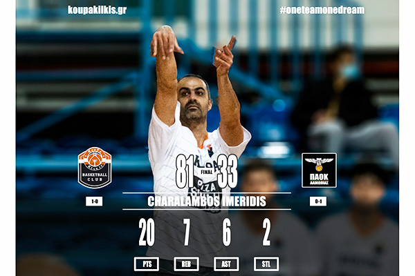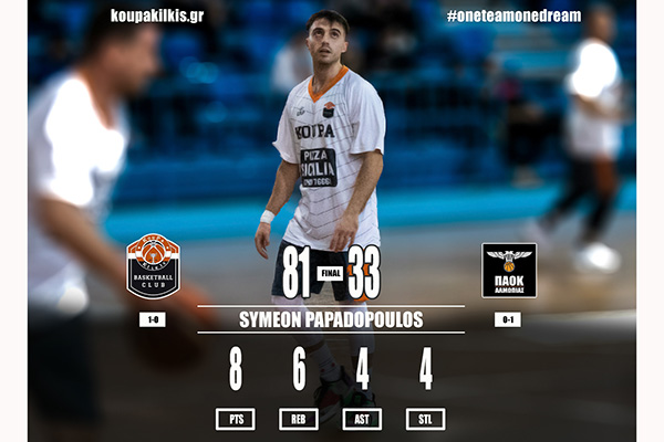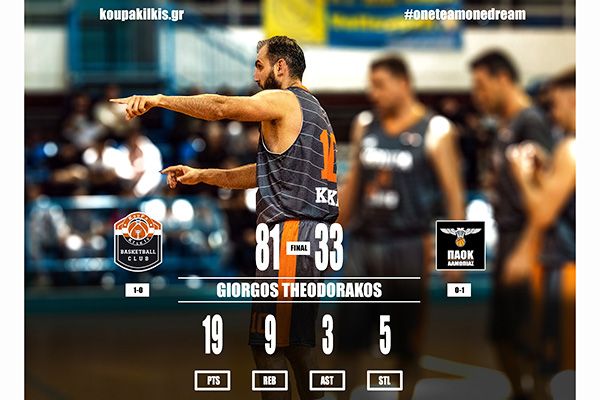 Η ασφυκτική πίεση στην άμυνα προκάλεσε όλα τα υπόλοιπα. Η ΚουΠα Κιλκίς πήρε κεφάλι από το πρώτο λεπτό στο σκορ και δεν κοίταξε ποτέ πίσω. Οι αιφνιδιασμοί διαδέχονταν ο ένας τον άλλο, ενώ όσο περνούσε η ώρα ήταν φανερό πως ο αντίπαλος δυσκολευόταν να ακολουθήσει στον ίδιο ρυθμό. Κάπως έτσι το 9 – 0, έγινε 17 – 3 και εν τέλει 22 - 9 στο τέλος του 1ου δεκαλέπτου. Η διαφορά δυναμικότητας επιβεβαιώθηκε στο δεύτερο δεκάλεπτο με το επιμέρους 20 – 2 ξεκαθαρίζοντας ουσιαστικά το τοπίο και δίνοντας στον αγώνα διαδικαστικό χαρακτήρα. 31 ήταν οι πόντοι που χώριζαν τις δύο ομάδες στο τέλος του ημιχρόνου (42 – 11). Αιχμή του δόρατος, ο Γιώργος Θεοδωράκος που πέτυχε τους 16 από τους 19 συνολικά πόντους του. Ο Γιώργος ήταν χάρμα ιδέσθαι και στις δυο πλευρές του γηπέδου, αφήνοντας τη σφραγίδα του στα 13,5 λεπτά που αγωνίστηκε.