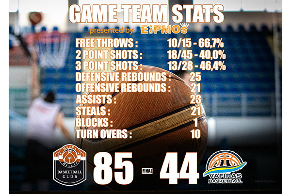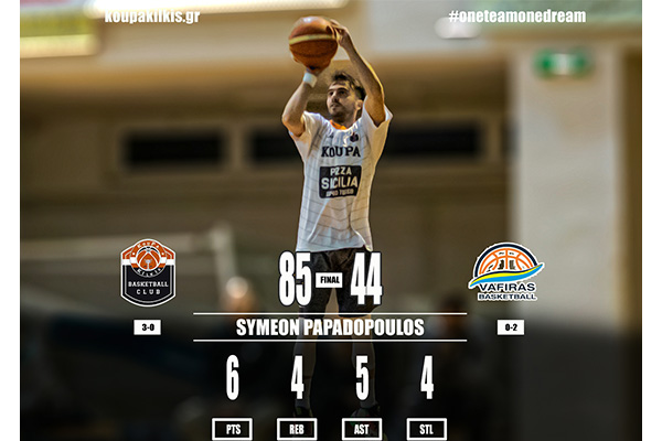 Η ΣΥΓΚΕΝΤΡΩΣΗ. Η ομάδα μπήκε συγκεντρωμένα στο παιχνίδι … «κλέβοντας» το μυαλό της αντιπάλου της, ξαφνιάζοντάς την με την αποφαιστικότητα και την κυνικότητα που επέδειξε από την αρχή του παιχνιδιού. Κινητήριος μοχλός όλου αυτού του εγχειρήματος, ο Συμεών Παπαδόπουλος, ο playmaker που έλειπε από την αρχή ύπαρξης αυτής της ομάδας. Ο Συμεών καθοδήγησε με ωριμότητα τους συμπαίκτες του μοίρασε ψύχραιμα το παιχνίδι και σκόραρε από το τρίποντο όποτε του δόθηκε η ευκαιρία.
