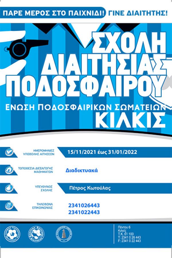 Η Επιτροπή Διαιτησίας της Ε.Π.Σ. Κιλκίς θα λειτουργήσει σχολή διαιτησίας για την περίοδο 2021-2022.