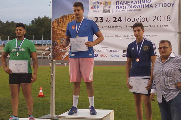 Ο Γιάννης Κορακίδης (1ος στη Σφύρα στο Πανελλήνιο Παμπαίδων) με προπονητή των Γιάννη Χρίστογλου.