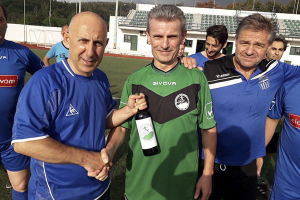 Οι Βετεράνοι Γουμένισσας προσέφεραν κρασί με το λογότυπο του Ομίλου.