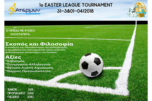 H Atermon Football Community (A.F.C) με το τεχνικό της επιτελείο διοργανώνει το 1st Easter League Tournament 2018 στις αθλητικές εγκαταστάσεις του Ατέρμονα στις 31 Μαρτίου & 1 Απριλίου.