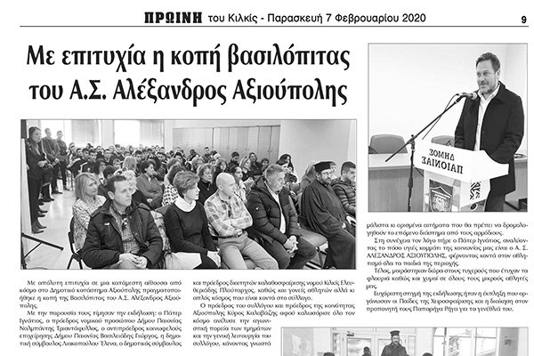 Πρωινή Κιλκίς (7-2-2020): Με επιτυχία η βασιλόπιτα του Αλέξανδρου Αξιούπολης