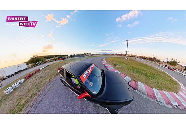 Ο Γιάννης ήταν εκεί στο σημείο εκκίνησης και έδινε σήμα στους οδηγούς να ξεκινήσουν το γύρο τους. Εμείς ενώ λαμβάνουμε ήδη τα στιγμιότυπά μας, αναζητούμε ταυτόχρονα έναν τρόπο για να βγάλουμε διαφορετικά πλάνα. Σκεφτόμαστε πως μπορούμε να σταθούμε στο μέσο της πίστας, αλλά δεν επιτρέπεται για λόγους ασφάλειας. Σκεφτήκαμε να δώσουμε την 360ο κάμερά μας σε κάποιον από τους συνοδηγούς των αυτοκινήτων. Ρωτήσαμε λοιπόν το Γιάννη, και στο μίνι συμβούλιο που ακολούθησε αποφασίσαμε τελικά να μπει ένας από εμάς, στο αυτοκίνητο.