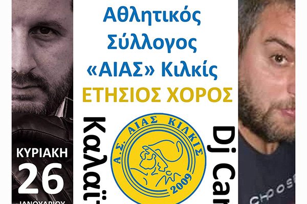 Την Κυριακή 26 Ιανουαρίου θα πραγματοποιηθεί ο ετήσιος χορός του Αίαντα Κιλκίς και οι βραβεύσεις των διακριθέντων αθλητών. Η εκδήλωση θα γίνει στις 1 το μεσημέρι, στο Κτήμα των Ευχών.