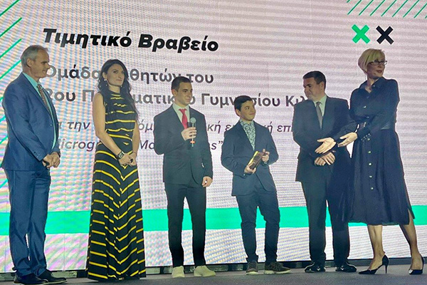 Ξεχωριστό «χρώμα» στην τελετή έδωσε η παρουσία των μαθητών Αλέξανδρου Κατσαρώνα και Ιωάννη Καρύδα με τους εκπαιδευτικούς Ελένη Σιδηροπούλου και Σταύρο Κατσαρώνα του 2ου Πειραματικού Γυμνασίου Κιλκίς, οι οποίοι παρέλαβαν το δεύτερο τιμητικό βραβείο της χρονιάς για την καινοτόμο μαθητική startup “Microgreens-Magicgreens” που ξεχώρισε σε Πανευρωπαϊκό επίπεδο ως η καλύτερη μαθητική εικονική επιχείρηση.