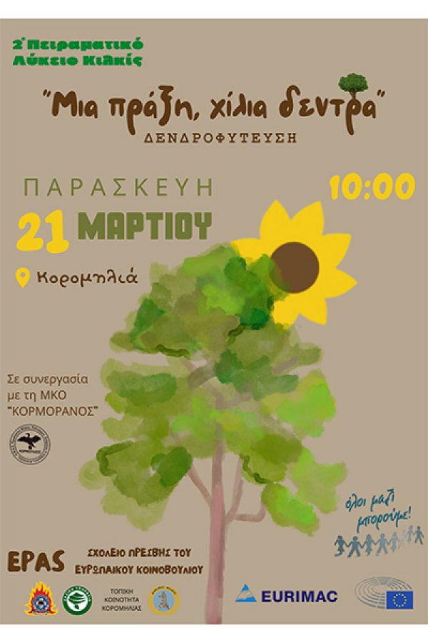 Στη δράση συμμετέχουν η ΜΚΟ Κορμοράνος της Ιεράς Μητρόπολης Πολυανής και Κιλκισίου, ο Δήμος Κιλκίς, το Δασαρχείο, η Πυροσβεστική, η Τοπική Κοινότητα Κορομηλιάς, το 2ο ΕΠΑΛ Κιλκίς, μας στηρίζει η Εurimac και το «Όλοι Μαζί Μπορούμε», το οποίο μας παρείχε απλόχερα τα δέντρα της δεντροφύτευσης.