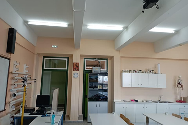 Στον πρώτο όροφο του κτηρίου οι αίθουσες εργαστηρίων των Φυσικών Επιστημών (Φυσικής - Χημείας - Βιολογίας - Περιβαλλοντικής Εκπαίδευσης) θυμίζουν εργαστήρια πανεπιστημιακών ιδρυμάτων του εξωτερικού, όπως και η αίθουσα – βιβλιοθήκη του σχολείου!
