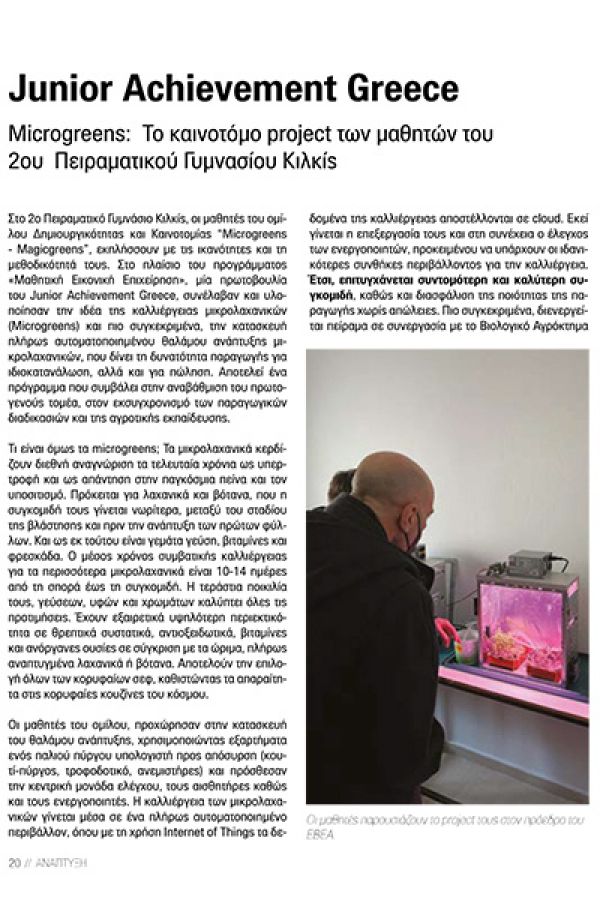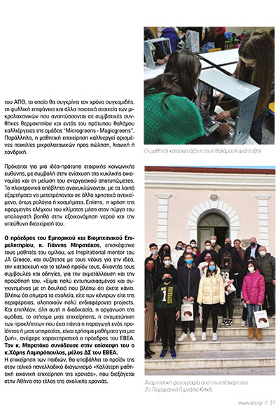 Δισέλιδο αφιέρωμα φιλοξενούσε στη μηνιαία έκδοσή του το περιοδικό του Εμπορικού και Βιομηχανικού Επιμελητηρίου Αθηνών (ΕΒΕΑ) στο τεύχος Φεβρουαρίου για τον Όμιλο Δημιουργικότητας και Καινοτομίας του 2ου Πειραματικού Γυμνασίου Κιλκίς, του οποίου Inspirational Mentor είναι ο Πρόεδρος του ΕΒΕΑ Γιάννης Μπρατάκος.