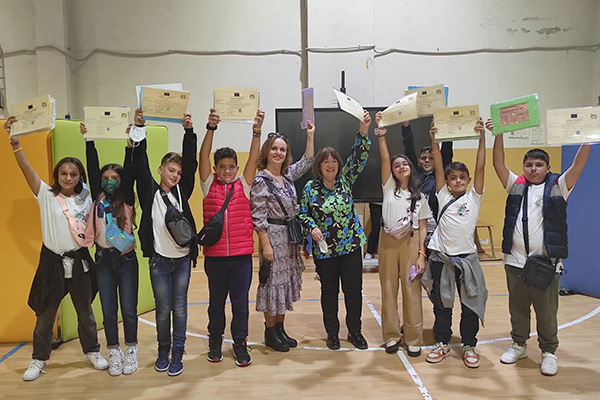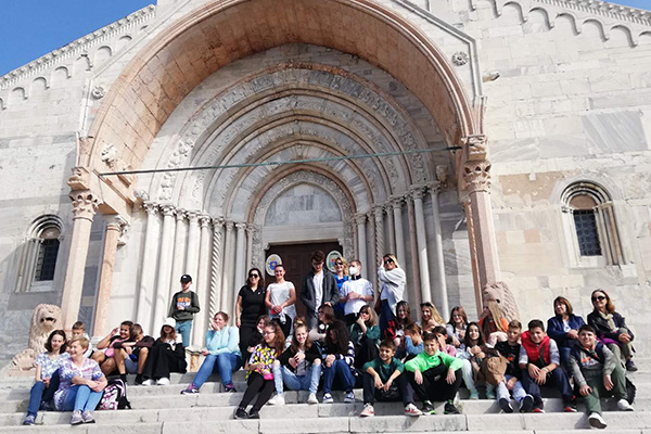 Την 1η ημέρα των εργασιών, επισκέφτηκαν το εταιρικό σχολείο και ξεναγήθηκαν σε αυτό από Ιταλούς συμμαθητές τους. Με στόχο την ανάπτυξη της συνεργασίας, της ενσυναίσθησης, της επικοινωνίας σε μια ξένη γλώσσα και της δημιουργικότητας, τα παιδιά, σε μικτές ομάδες και των 4 χωρών, εκφράστηκαν με τα έργα τους σε ένα εργαστήρι χαρακτικής σε χαλκό.