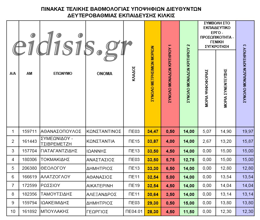 Ετσι, ο κ. Αθανασόπουλος είναι ο νέος διευθυντής, αν και υπάρχει και η διαδικασία των ενστάσεων με 34,47 μόρια συνολικά έναντι 33,87 μόρια της κας Συμεωνίδου.