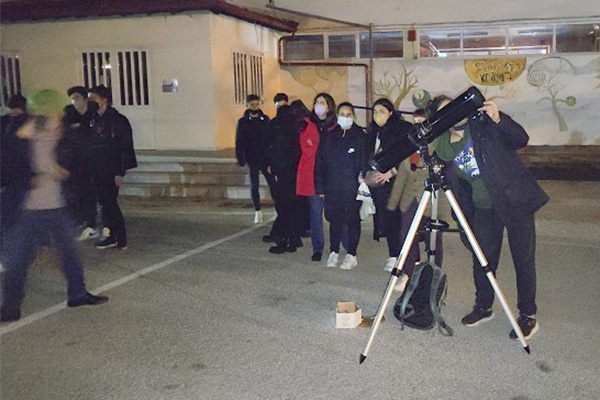 Αυτή την εξαιρετική, έναστρη νύχτα οι μαθητές με χρήση laser είδαν τον αστερισμό του Ωρίωνα και τις Πλειάδες, ενώ στη συνέχεια, μέσω των τριών τηλεσκοπίων που είχαν στηθεί στο χώρο, παρατήρησαν το νεφέλωμα του Ωρίωνα ως τόπο γέννησης αστέρων, τις Πλειάδες, το Σείριο και βέβαια τη Σελήνη.