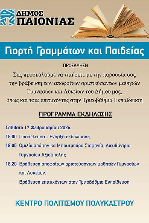 Η τελετή θα γίνει το Σάββατο 17 Φεβρουαρίου στο Κέντρο Πολιτισμού Πολυκάστρου