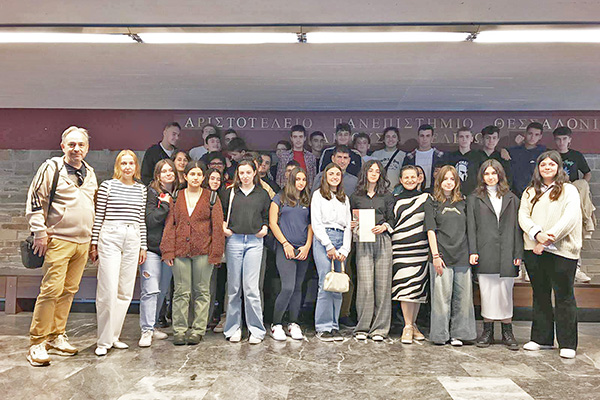 Οι μαθητές αρχικά περιηγήθηκαν στο κτήριο της παλαιάς Φιλοσοφικής σχολής. Στη συνέχεια συναντήθηκαν με τον κοσμήτορα της Θεολογικής σχολής καθηγητή Χρυσόστομο Σταμούλη που τους υποδέχτηκε με θέρμη και συνομίλησε μαζί τους. Παρούσα στη συνάντηση ήταν και η κα. Ιωάννα Κλιάρη, υπεύθυνη των εκπαιδευτικών προγραμμάτων του Πατριαρχικού Ιδρύματος Πατερικών Μελετών με το οποίο τα δύο σχολεία έχουν συνάψει σύμφωνο συνεργασίας. Η κα. Κλιάρη ξενάγησε τους μαθητές στους χώρους της σχολής και στο πανεπιστημιακό campus απαντώντας στις ερωτήσεις τους και δίνοντας ενδιαφέρουσες πληροφορίες για την ιστορία του ιδρύματος.
