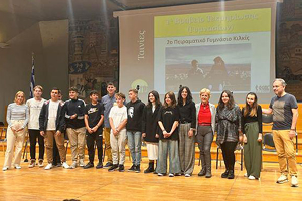 Ακολούθησε η μετάβαση στην Αίθουσα Τελετών του ΑΠΘ για την τελετή βράβευσης στα πλαίσια του 7ου Διεθνούς Διαγωνισμού “Ποντιακός Ελληνισμός: Μνήμες και Όνειρα, Παρελθόν, Παρόν και Μέλλον”. Οι μαθητές μας κατέκτησαν το 1ο βραβείο στην κατηγορία “Ταινίες Τεκμηρίωσης” με την ταινία “Η Καμπάνα του Καρς” που έχει αφιερωθεί στην μνήμη του Δημητρίου Νικοπολιτίδη. Η ταινία αυτή έχει λάβει και άλλη διάκριση (βραβείο αφίσας στον 13ο Διεθνή Μαθητικό Διαγωνισμό Ταινιών Μικρού Μήκους), παρουσιάστηκε στο Πανελλήνιο Μαθητικό Συνέδριο “Έλα να σου μιλήσω για τον τόπο μου” και στις 18 Νοεμβρίου θα παρουσιαστεί στην Επιστημονική Ημερίδα “Η καινοτομία στην εκπαίδευση : Το άδηλο πρόγραμμα των σχολικών μονάδων” στην Ιερά Θεολογική Σχολή Χάλκης.