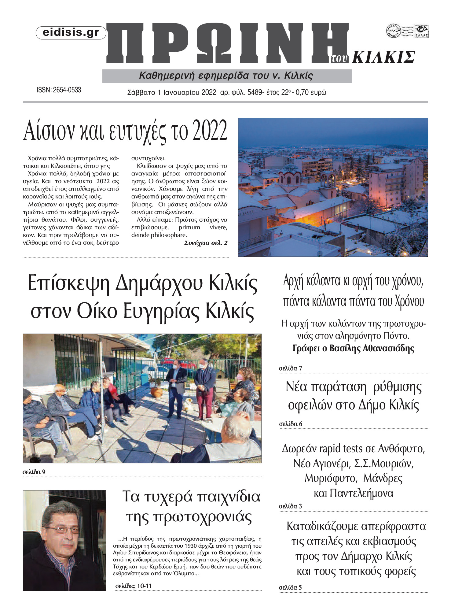 Διαβάστε το νέο πρωτοσέλιδο της Πρωινής του Κιλκίς, μοναδικής καθημερινής εφημερίδας του ν. Κιλκίς (1-1-2022)