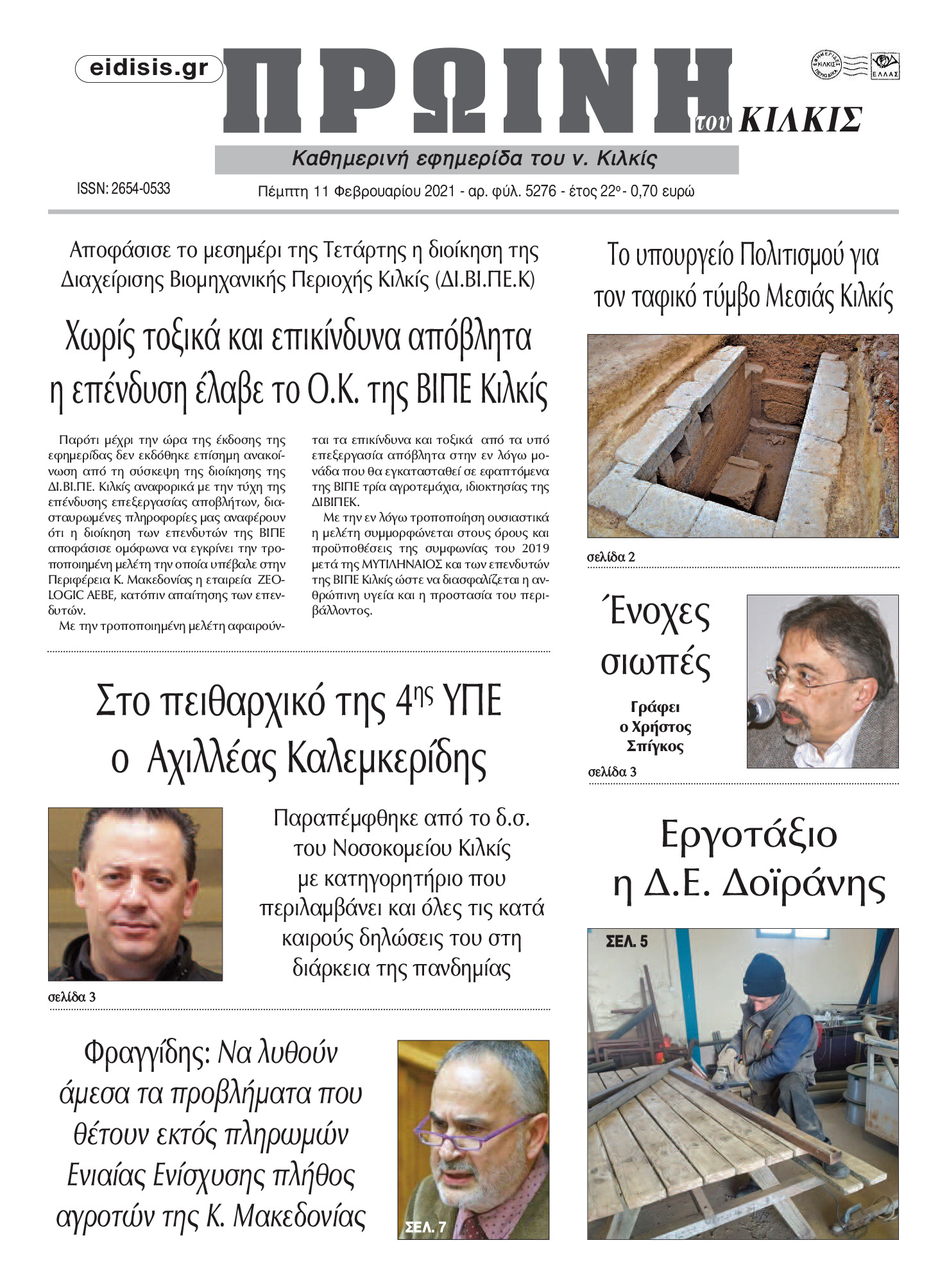 Διαβάστε το νέο πρωτοσέλιδο της Πρωινής του Κιλκίς, μοναδικής καθημερινής εφημερίδας του ν. Κιλκίς (11-2-2021)