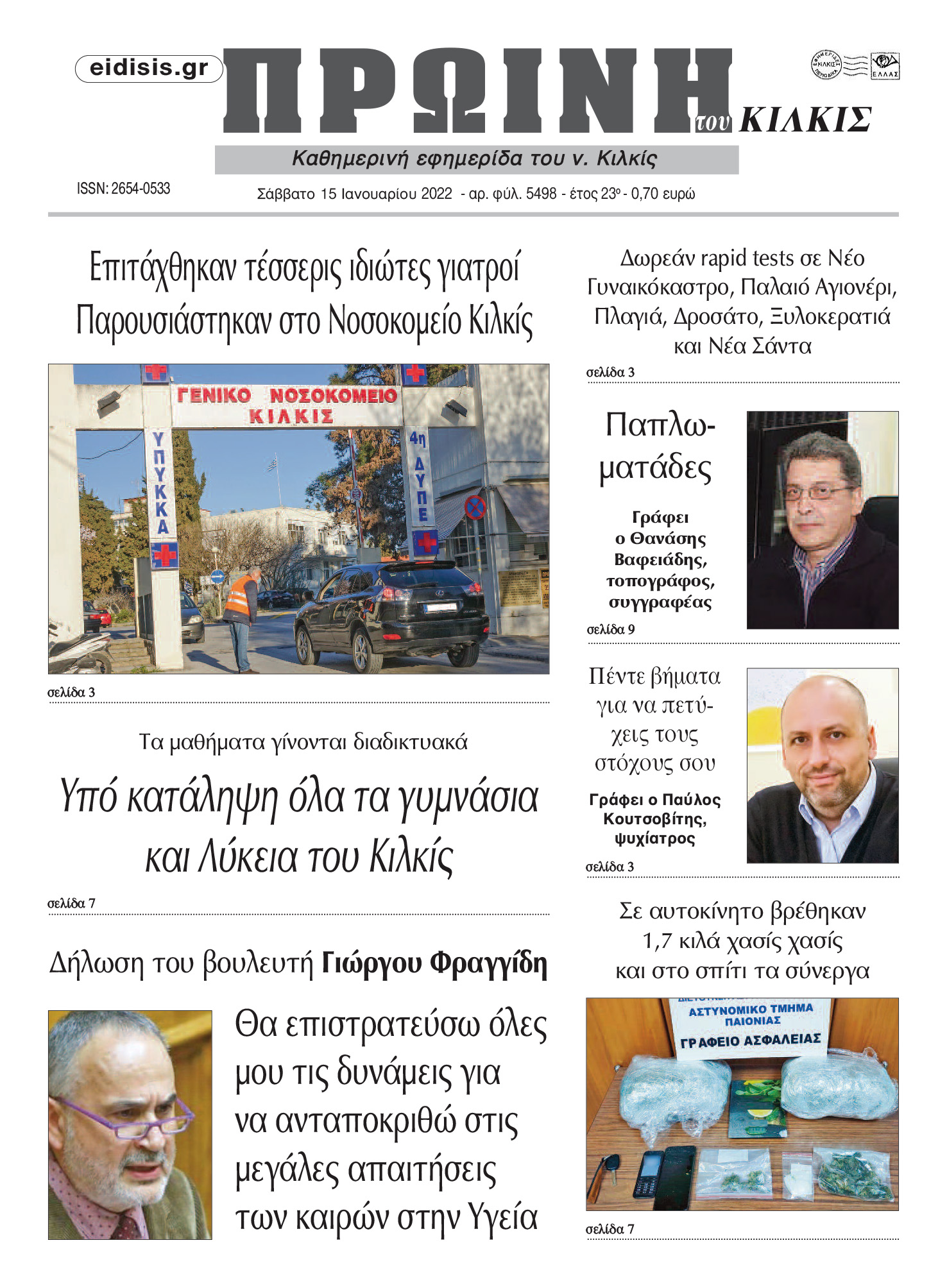 Διαβάστε το νέο πρωτοσέλιδο της Πρωινής του Κιλκίς, μοναδικής καθημερινής εφημερίδας του ν. Κιλκίς (15-1-2022)