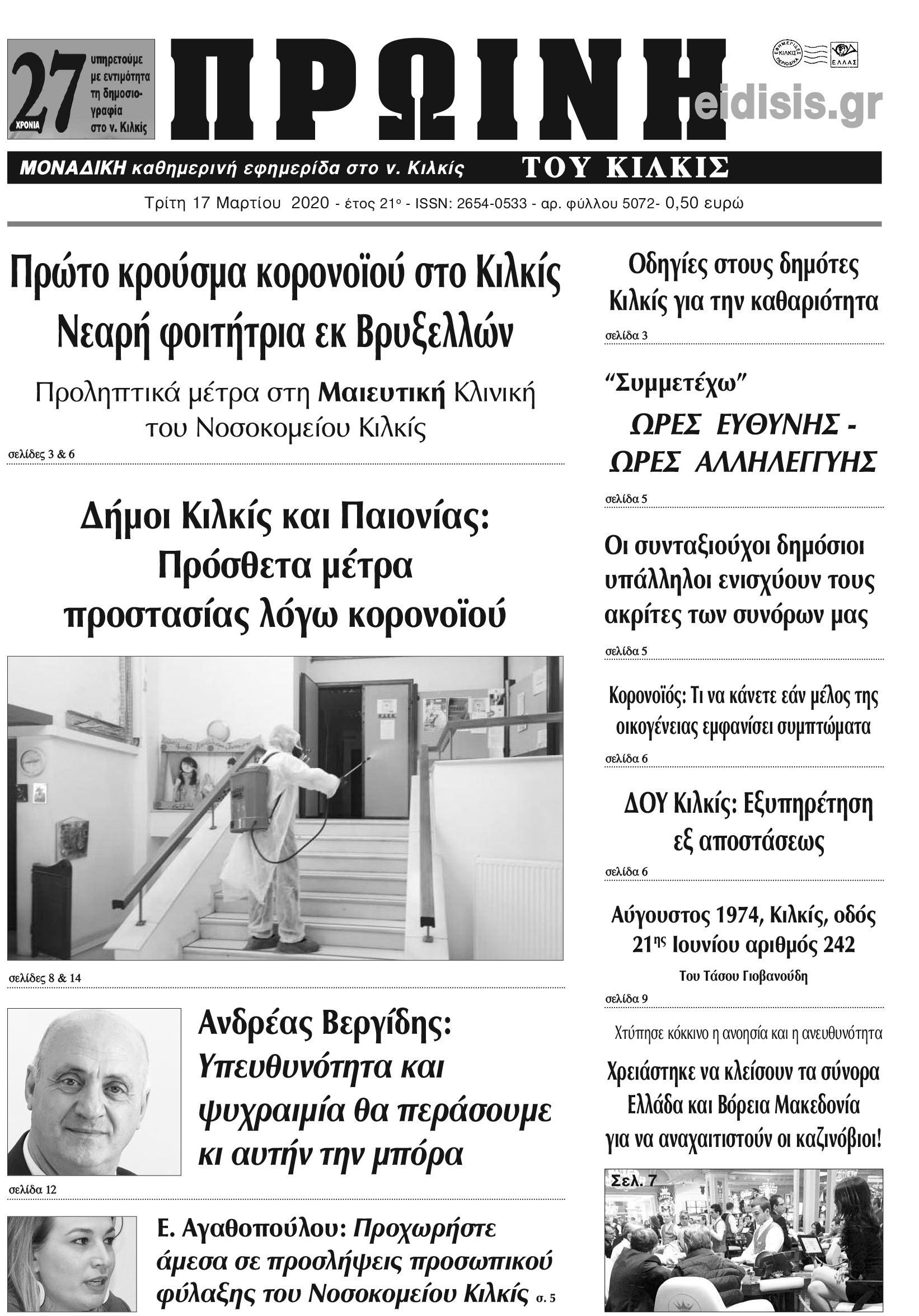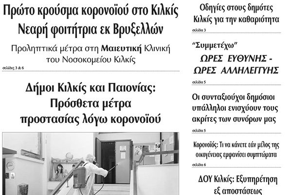 Διαβάστε το νέο πρωτοσέλιδο της Πρωινής του Κιλκίς, μοναδικής καθημερινής εφημερίδας του ν. Κιλκίς (17-3-2020)