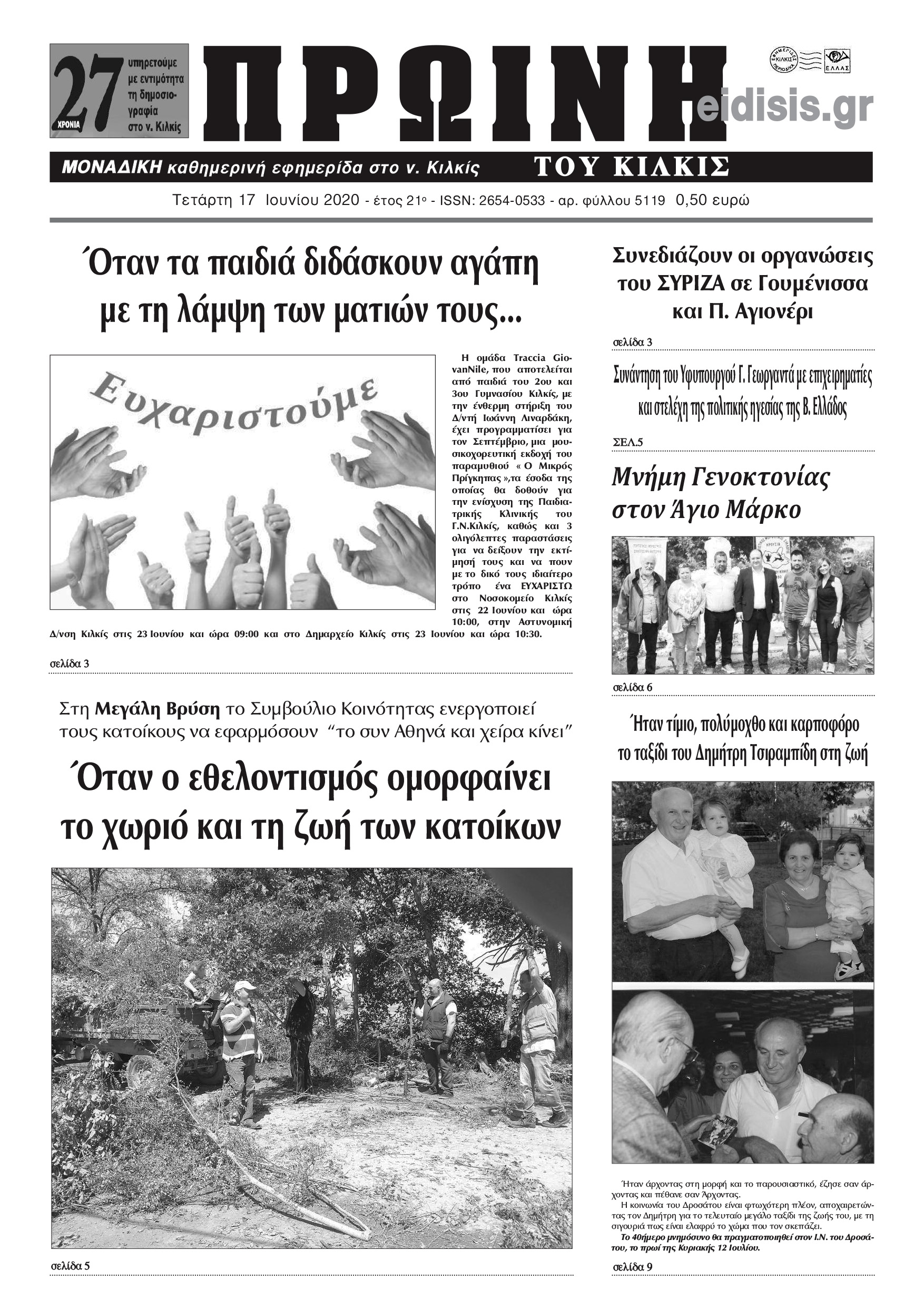 Διαβάστε το νέο πρωτοσέλιδο της Πρωινής του Κιλκίς, μοναδικής καθημερινής εφημερίδας του ν. Κιλκίς (17-6-2020)