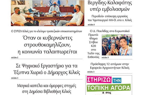 Διαβάστε το νέο πρωτοσέλιδο της Πρωινής του Κιλκίς, μοναδικής καθημερινής εφημερίδας του ν. Κιλκίς (17-7-2021)