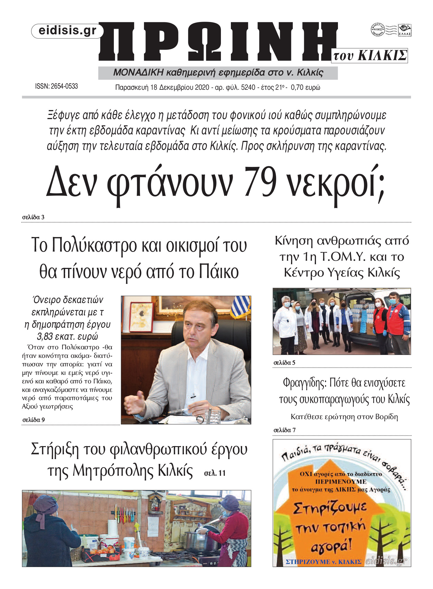 Διαβάστε το νέο πρωτοσέλιδο της Πρωινής του Κιλκίς, μοναδικής καθημερινής εφημερίδας του ν. Κιλκίς (18-12-2020)