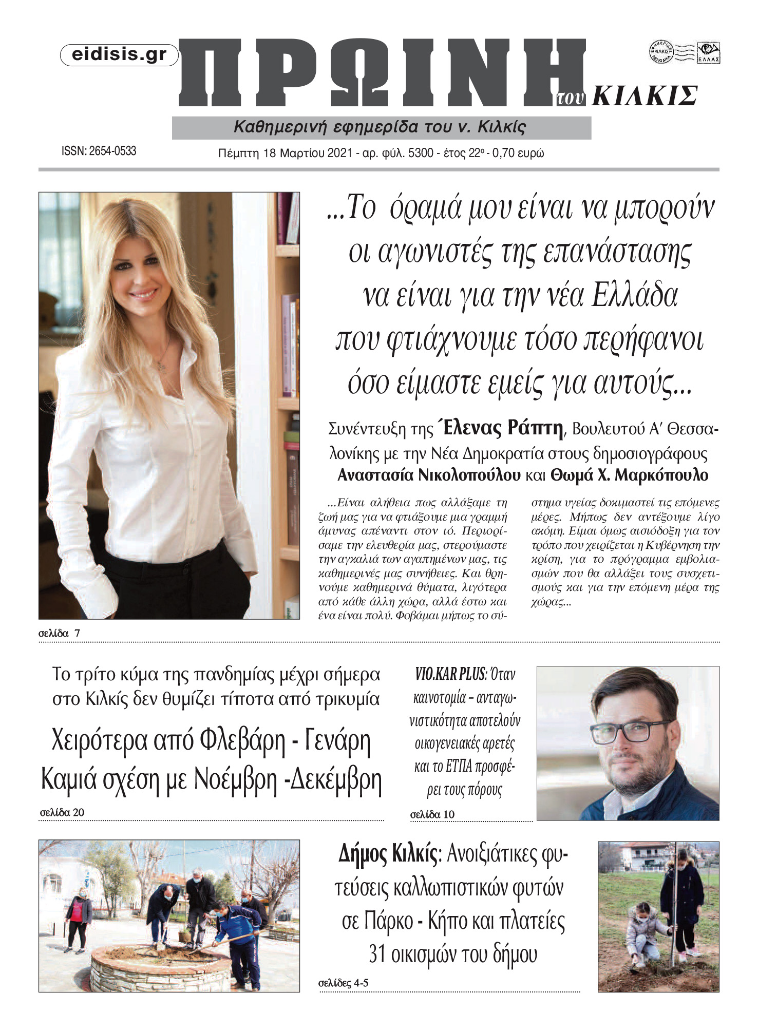 Διαβάστε το νέο πρωτοσέλιδο της Πρωινής του Κιλκίς, μοναδικής καθημερινής εφημερίδας του ν. Κιλκίς (18-3-2021)
