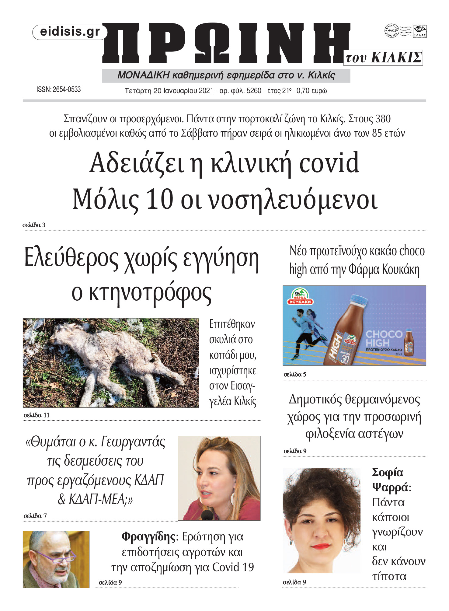 Διαβάστε το νέο πρωτοσέλιδο της Πρωινής του Κιλκίς, μοναδικής καθημερινής εφημερίδας του ν. Κιλκίς (20-1-2021)