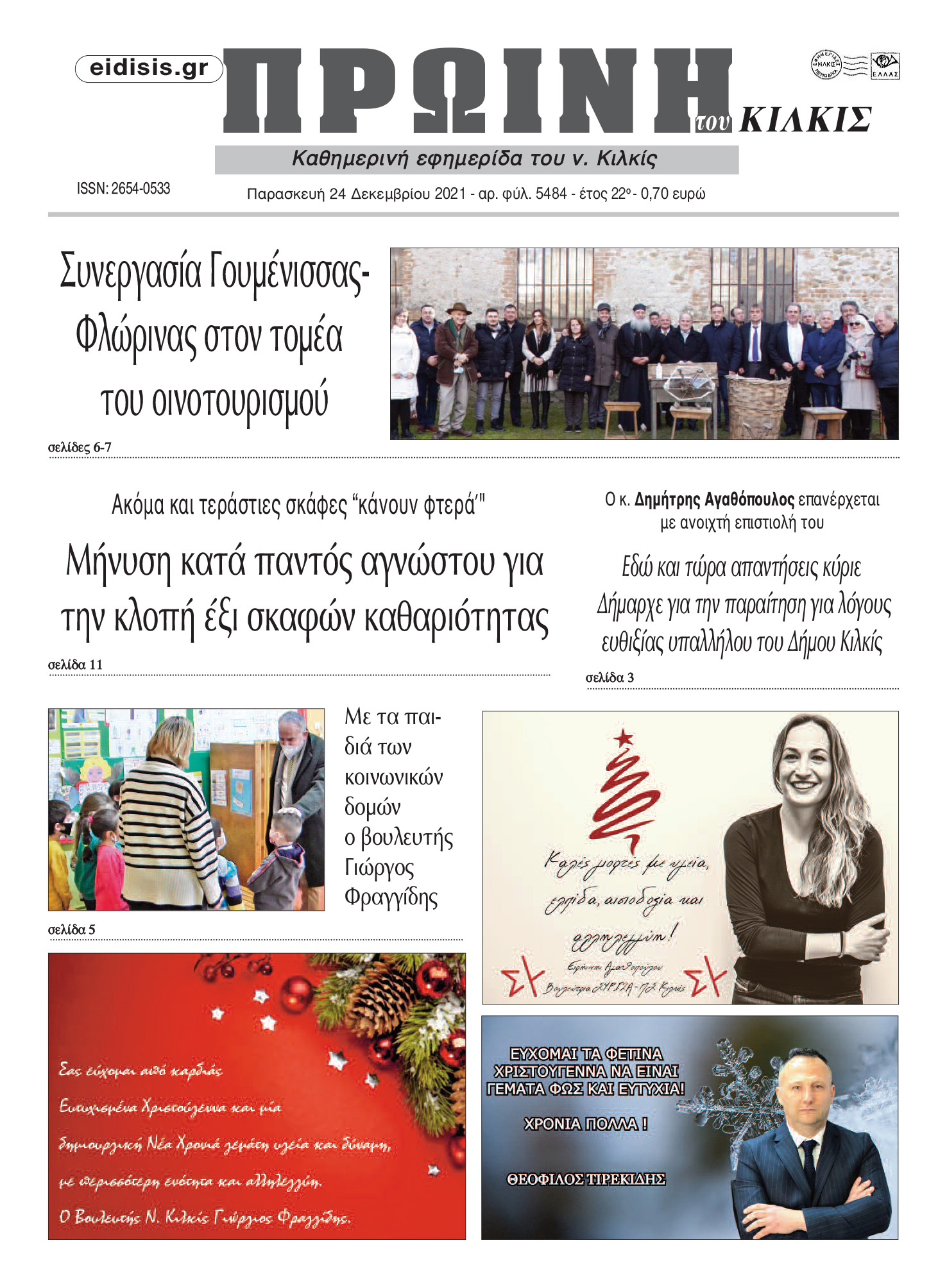 Διαβάστε το νέο πρωτοσέλιδο της Πρωινής του Κιλκίς, μοναδικής καθημερινής εφημερίδας του ν. Κιλκίς (24-12-2021)