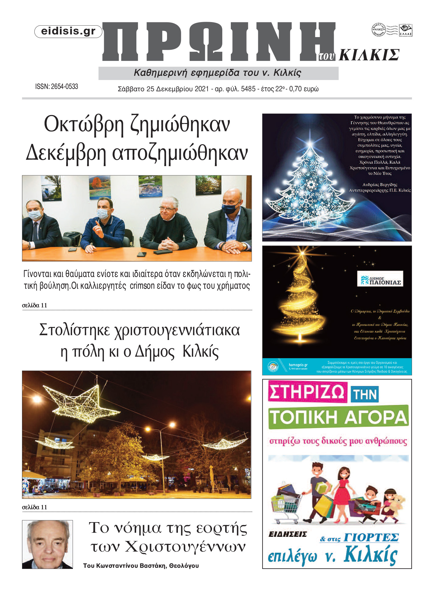 Διαβάστε το νέο πρωτοσέλιδο της Πρωινής του Κιλκίς, μοναδικής καθημερινής εφημερίδας του ν. Κιλκίς (25-12-2021)