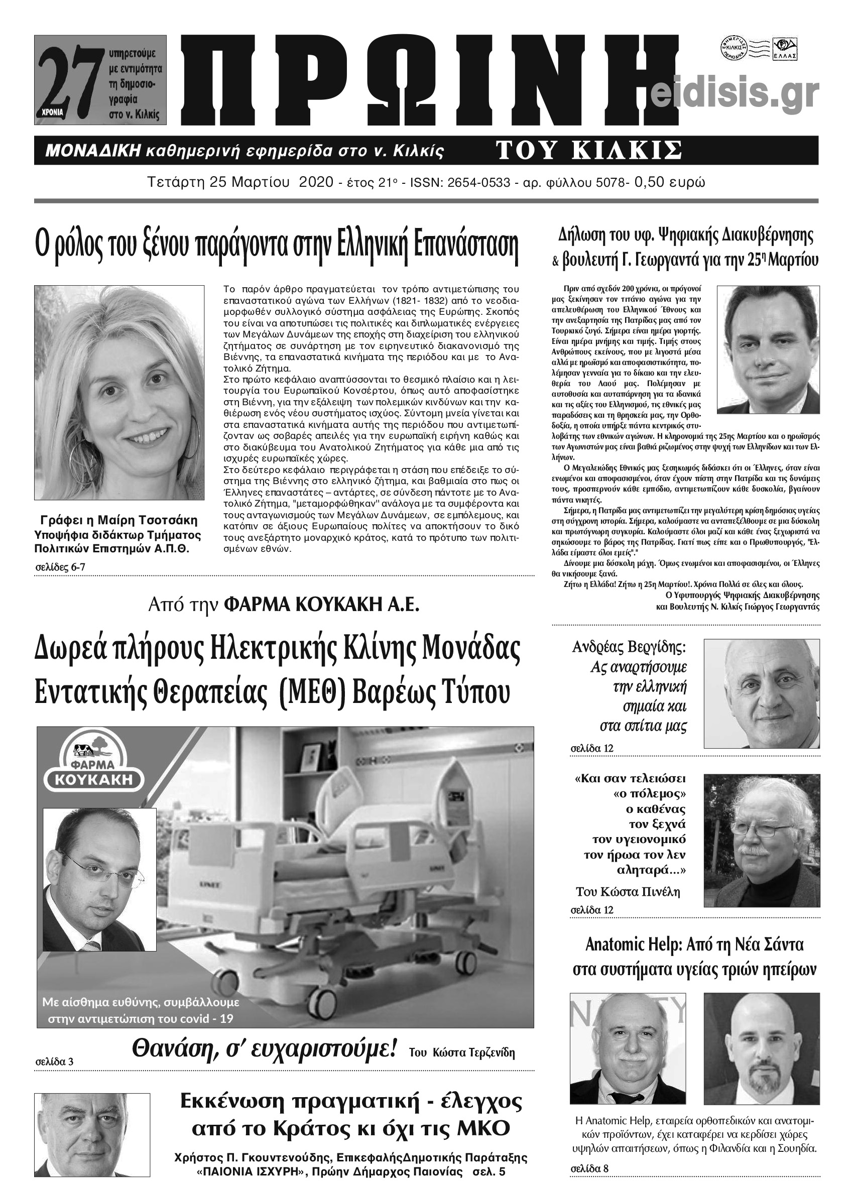 Διαβάστε το νέο πρωτοσέλιδο της Πρωινής του Κιλκίς, μοναδικής καθημερινής εφημερίδας του ν. Κιλκίς (25-3-2020)