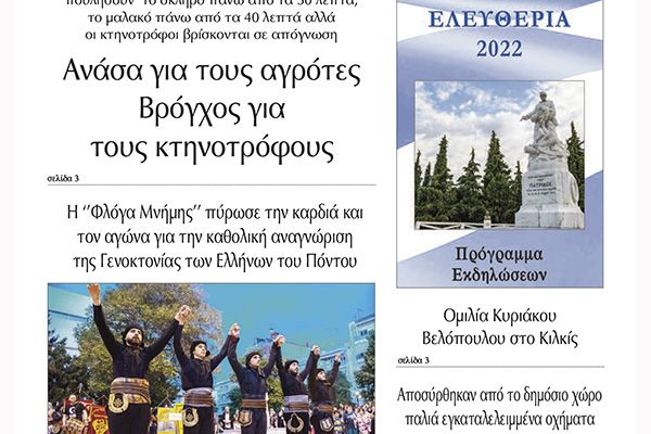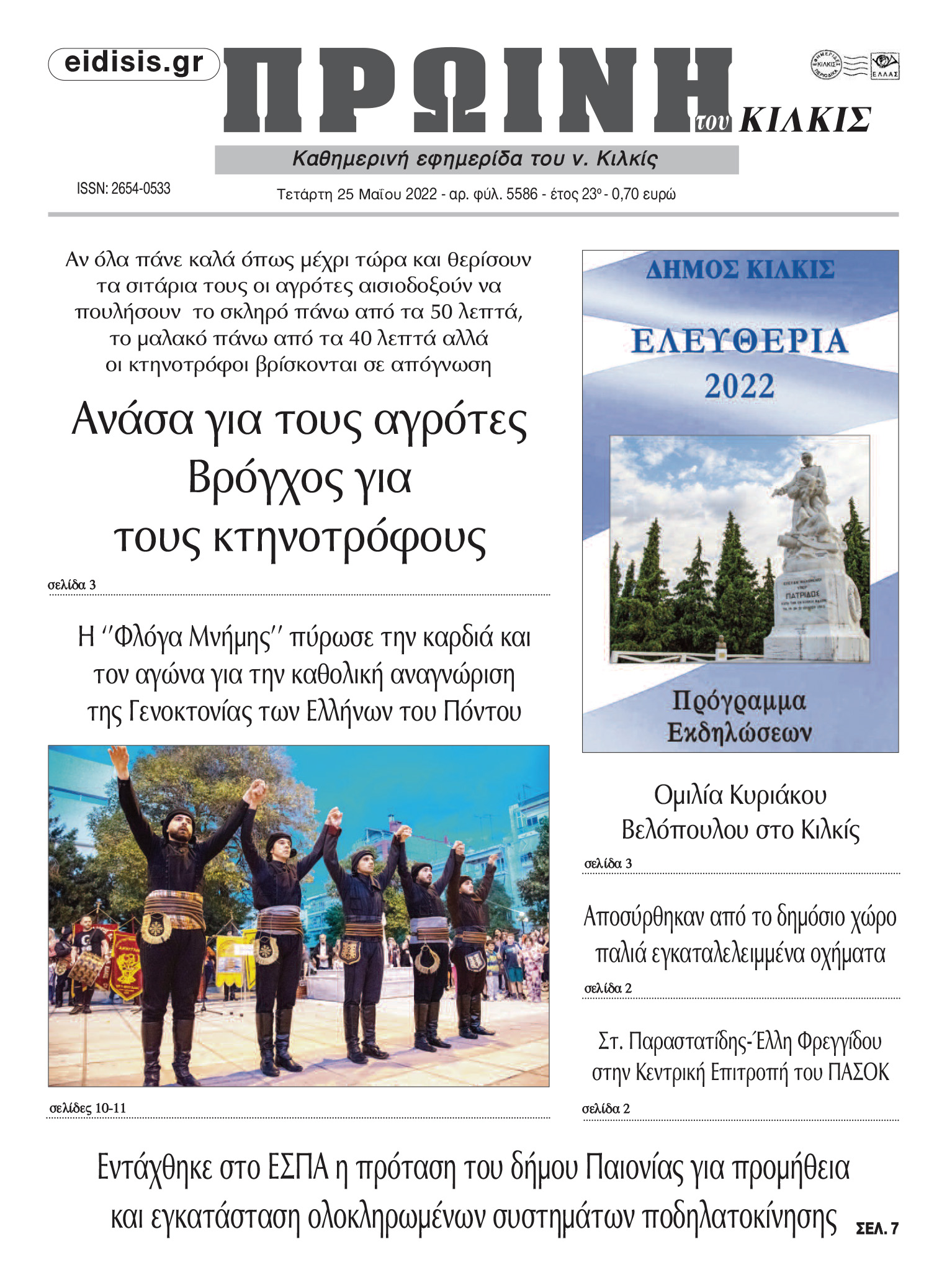 Διαβάστε το νέο πρωτοσέλιδο της Πρωινής του Κιλκίς, μοναδικής καθημερινής εφημερίδας του ν. Κιλκίς (25-5-2022)