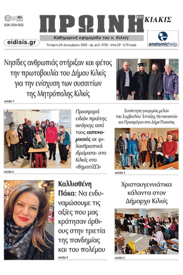 Διαβάστε το νέο πρωτοσέλιδο της Πρωινής του Κιλκίς, μοναδικής καθημερινής εφημερίδας του ν. Κιλκίς (28-12-2022)