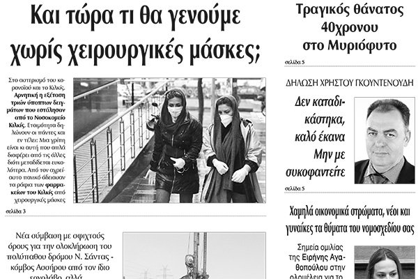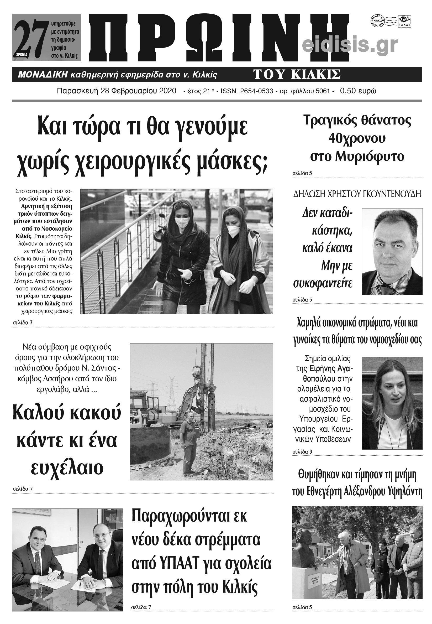 Διαβάστε το νέο πρωτοσέλιδο της Πρωινής του Κιλκίς, μοναδικής καθημερινής εφημερίδας του ν. Κιλκίς (28-2-2020)