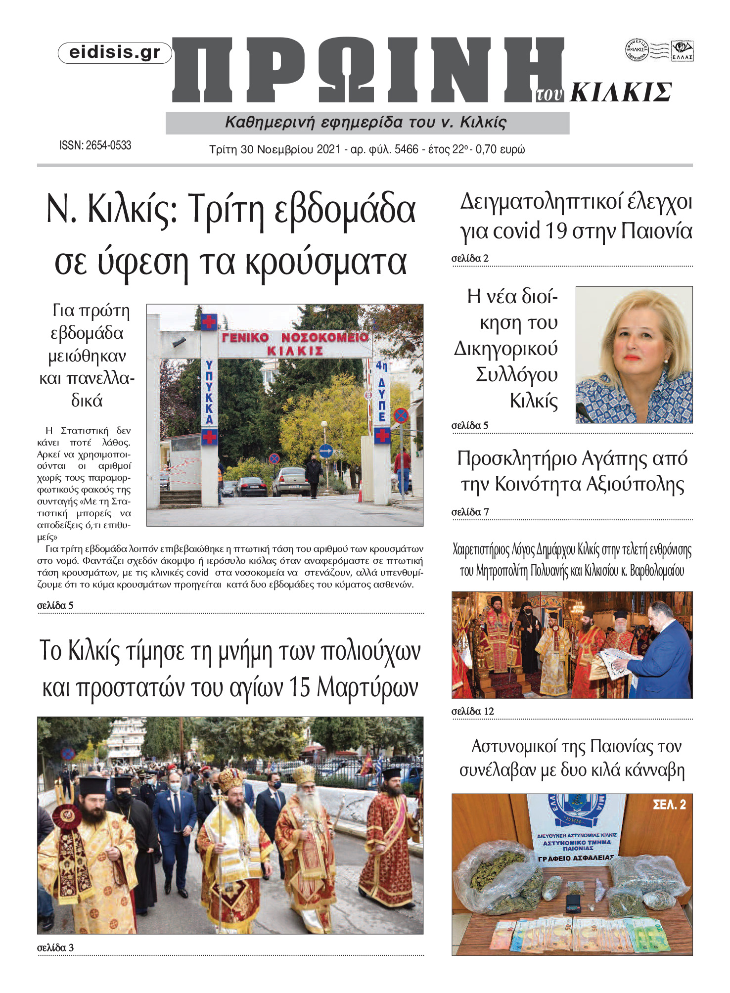 Διαβάστε το νέο πρωτοσέλιδο της Πρωινής του Κιλκίς, μοναδικής καθημερινής εφημερίδας του ν. Κιλκίς (30-11-2021)