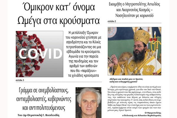 Διαβάστε το νέο πρωτοσέλιδο της Πρωινής του Κιλκίς, μοναδικής καθημερινής εφημερίδας του ν. Κιλκίς (4-1-2022)