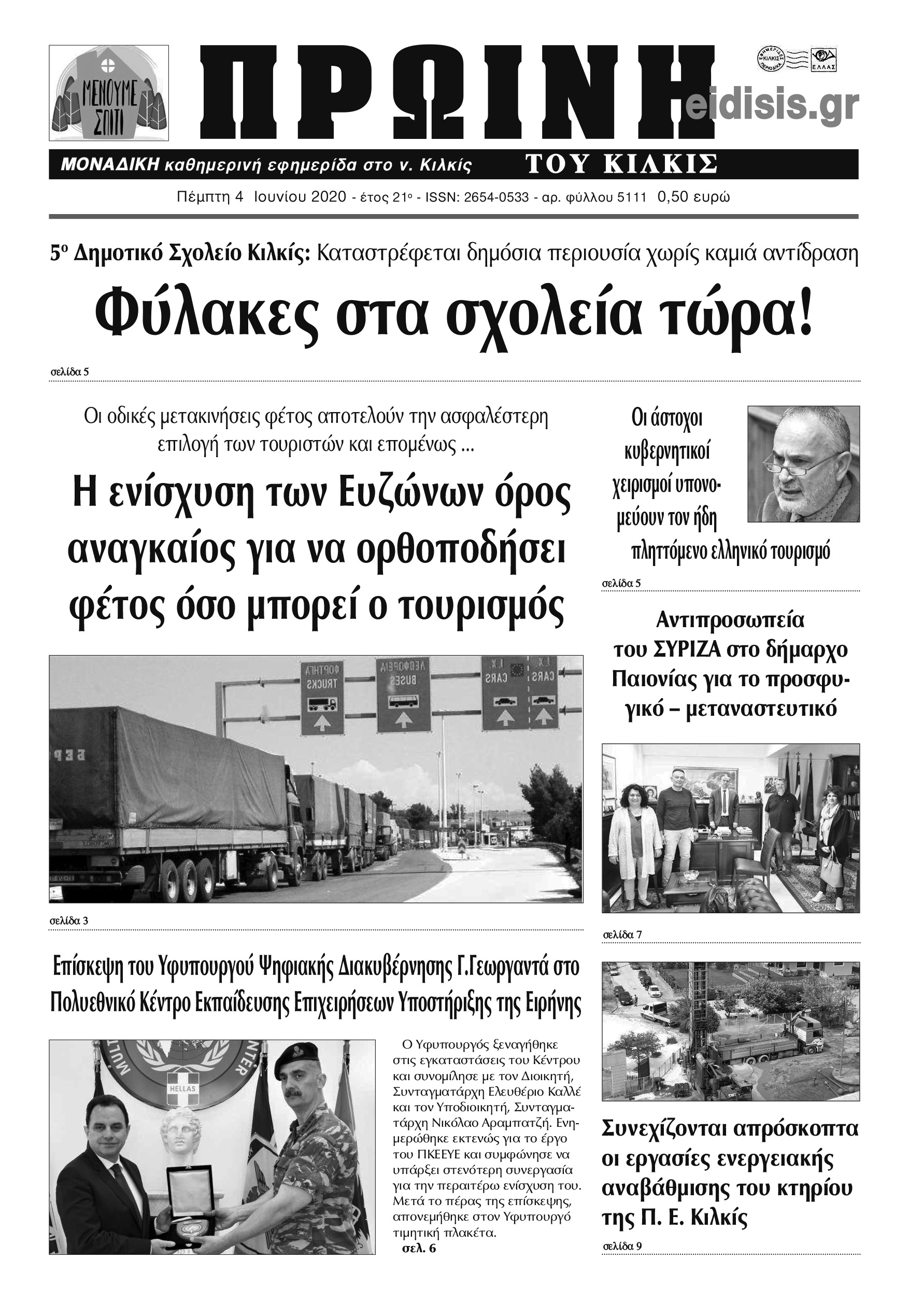 Διαβάστε το νέο πρωτοσέλιδο της Πρωινής του Κιλκίς, μοναδικής καθημερινής εφημερίδας του ν. Κιλκίς (4-6-2020)