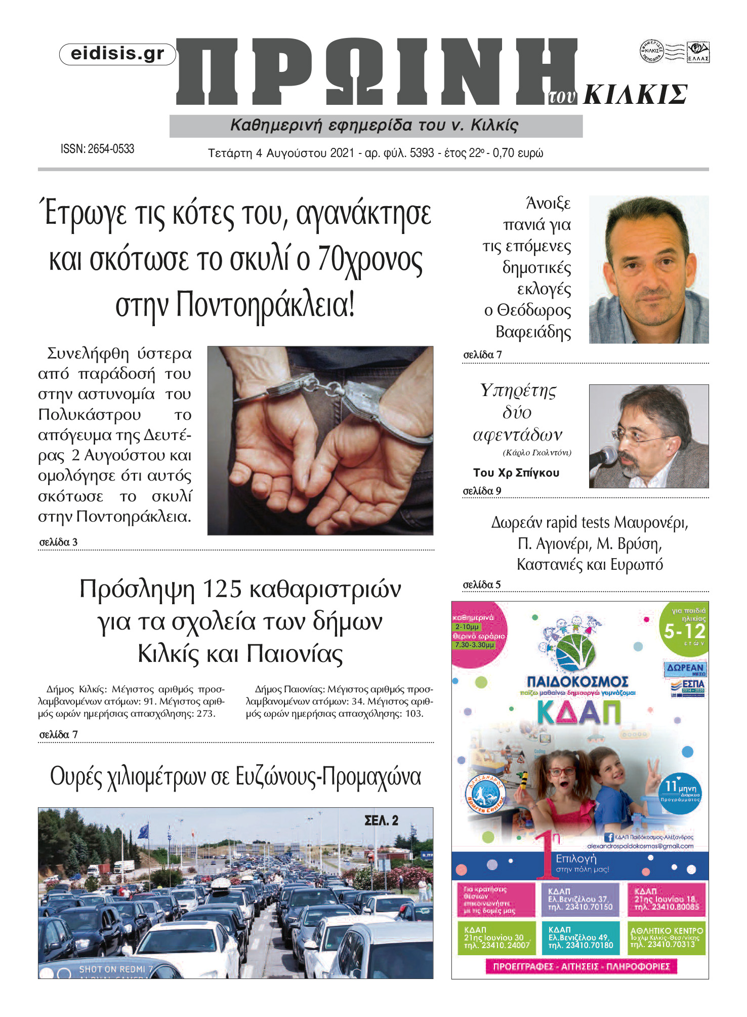 Διαβάστε το νέο πρωτοσέλιδο της Πρωινής του Κιλκίς, μοναδικής καθημερινής εφημερίδας του ν. Κιλκίς (4-8-2021)